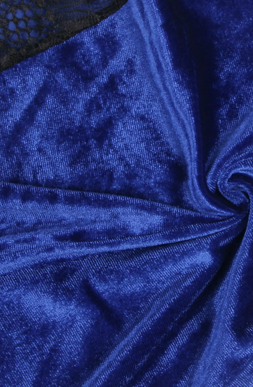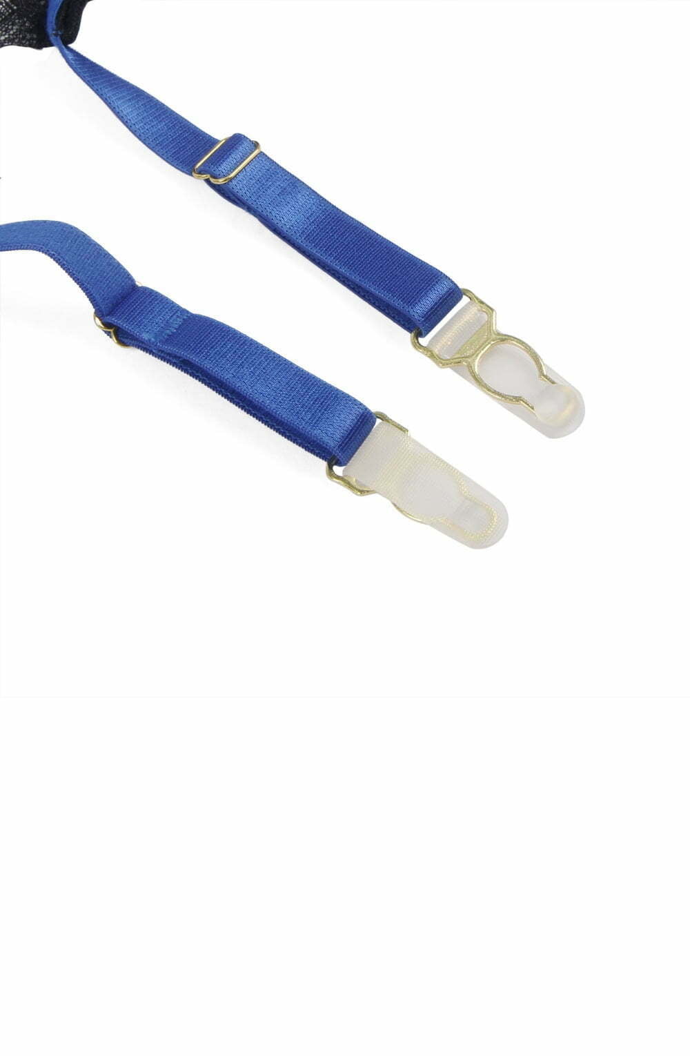 Dress in luxury with our Rich Blue Gartered Babydoll set (thong included), adorned in shimmering fabric and delicate eyelash lace. The open front and strappy back add a hint of seduction to its elegant design. With attached garters, this babydoll is a perfect blend of sophistication and allure, perfect for elevating your intimate moments in captivating blue (stockings not included)